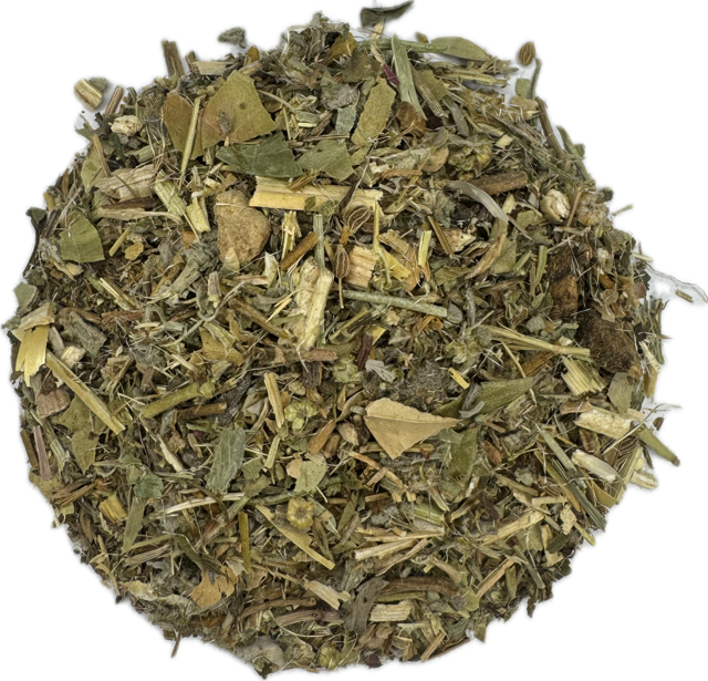 - ingrediënten: alsemkruid, salie, mirteblad, valeriaanwortel, varkensgras, duizendguldenkruid, hondsdraf, gezegende distelkruid, anijszaad, alantswortel, rozemarijn
