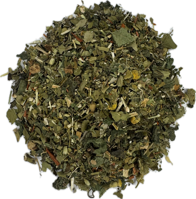 - ingrediënten: brandnetelblad, maté thee, sarsaparillawortel, aardbeiblad, duizendblad, sint janskruid, sassafras, framboosblad, sandelhout, kamille, hysop